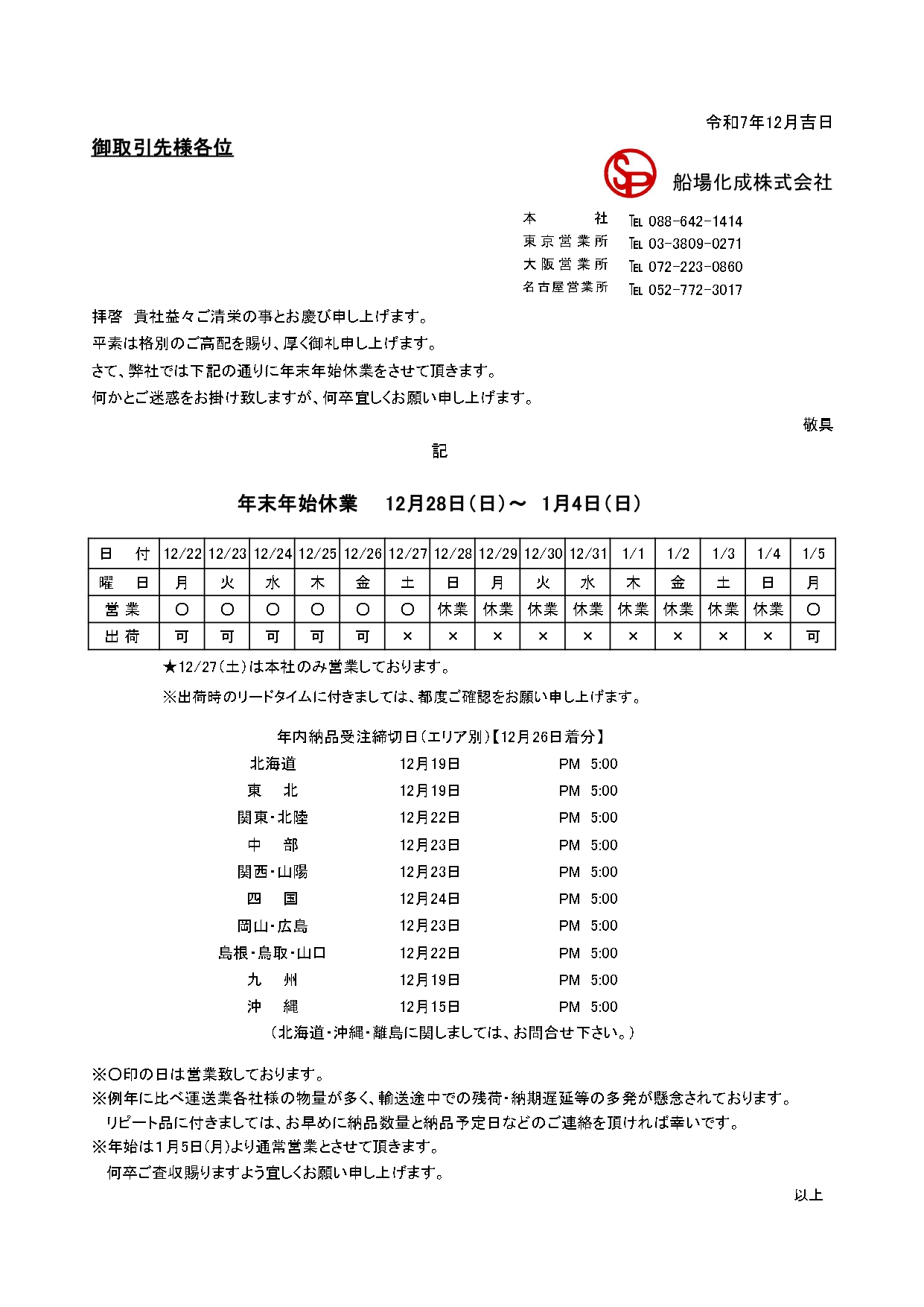 【休暇案内】年末年始休業日のご案内